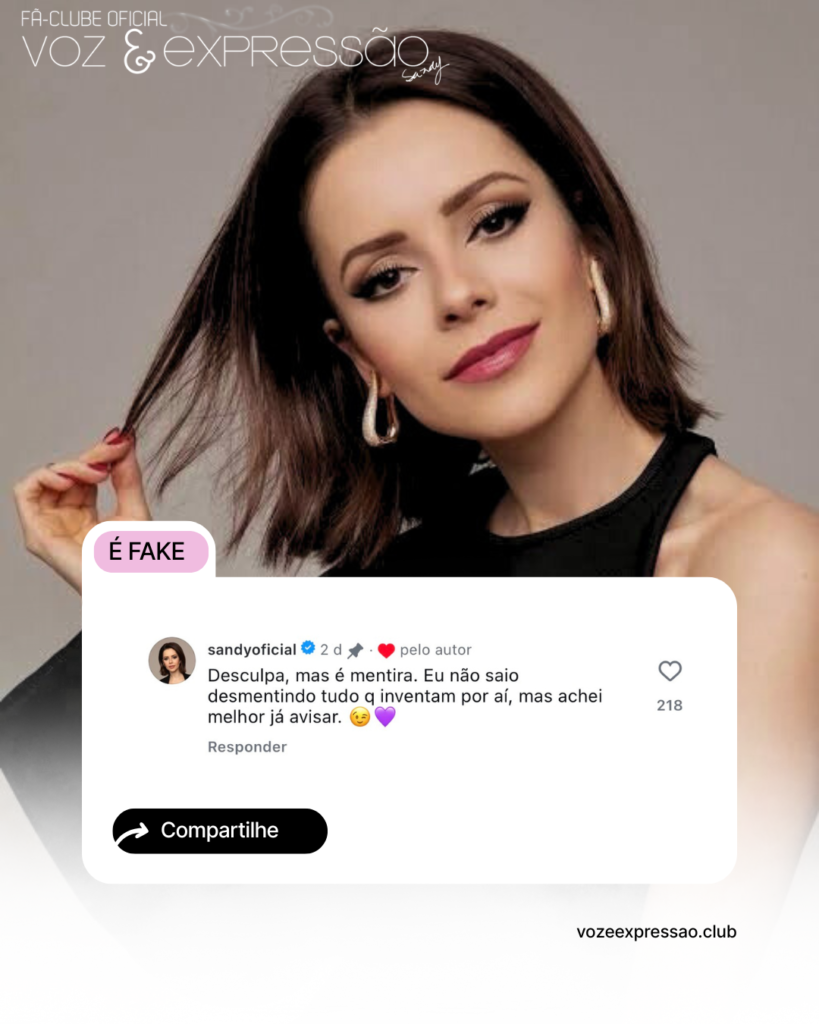 Recentemente, uma página de fãs publicou uma postagem afirmando que Sandy estaria envolvida na nova novela das 7 da Rede Globo, intitulada “Acelera Coração”. No entanto, a artista, desmentiu tais informações por meio de uma resposta a um post no insagram, esclarecendo que não há qualquer confirmação ou participação sua no projeto. A informação havia sido divulgada pelo jornalista Gabriel Vaquer.